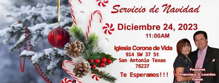 Únete a nosotros en nuestro conmovedor Servicio de Navidad el 24 de diciembre a las 11:00 AM en Iglesia Corona de Vida. Este servicio especial está diseñado para celebrar el significado más profundo de la temporada y compartir el mensaje de amor y esperanza que trae el nacimiento de Jesús.